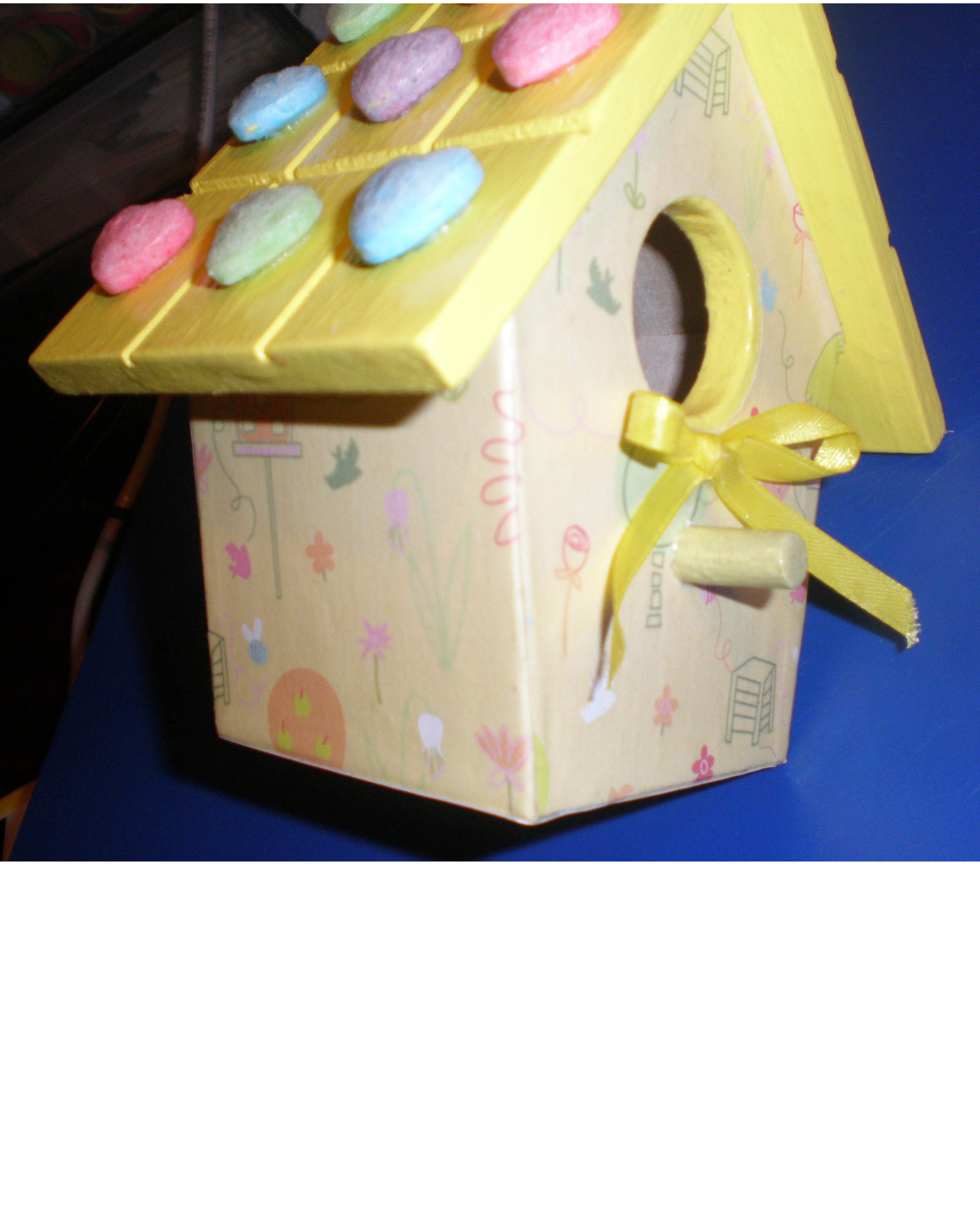 The color yellow reminds me of a fresh Spring day.The sun is out and birds are in the air looking for a mate to build a nest with. This birdhouse is an example of that feeling that love comes with the warmth of the sun and outdoor activities.