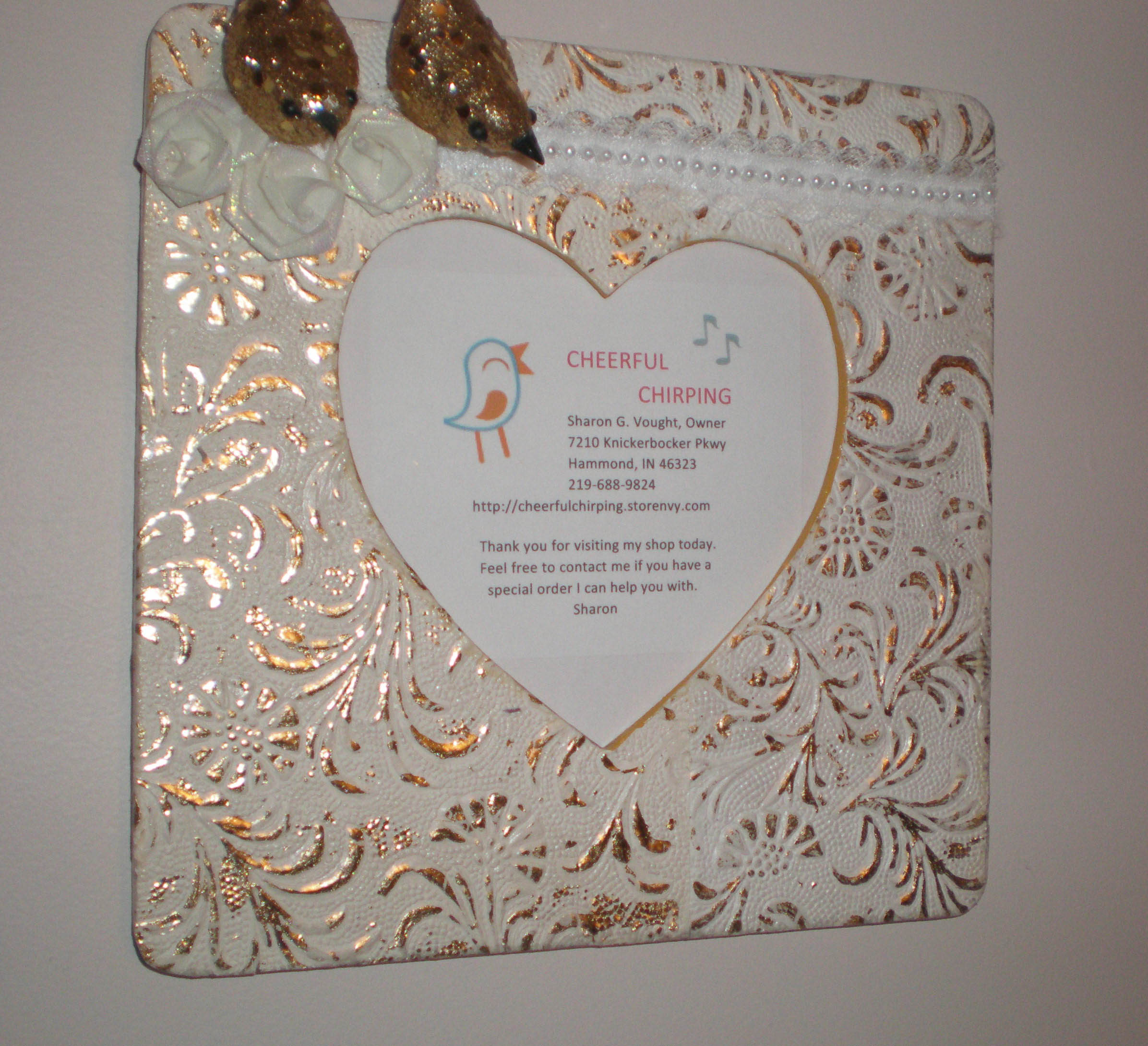 A male and female bird sit in honor of their anniversary. This is an exceptionally beautiful frame and will be cherished for many years to come.