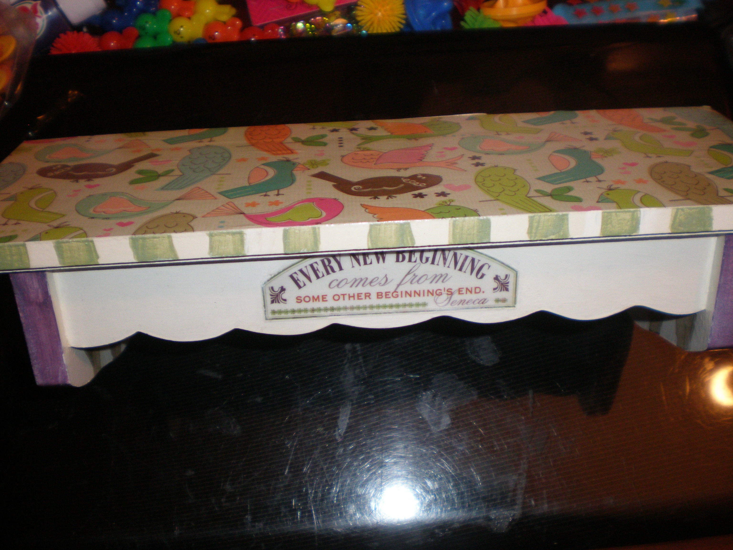 A keepsake for any home. This bookshelf has a friendly, springtime influence which makes you want to stop and ponder the saying on it, "Every New Beginning Comes From Some Other Beginning's End." Seneca