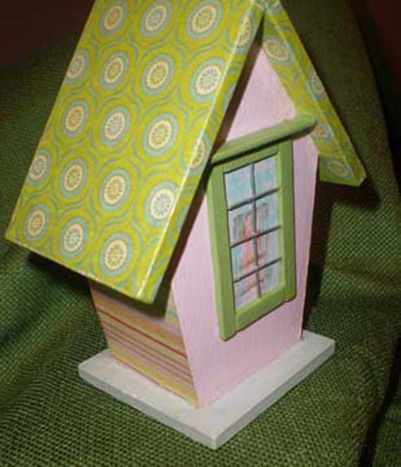 When I sat and thought of spring I just could not zoom in on any particular color or design. So, I chose all of my thoughts and put them all on one birdhouse. Odd to some, but it contains a flow of color that you may also find. Oh, and this was my first attempt at adding my own 3D effects, a window on the back.