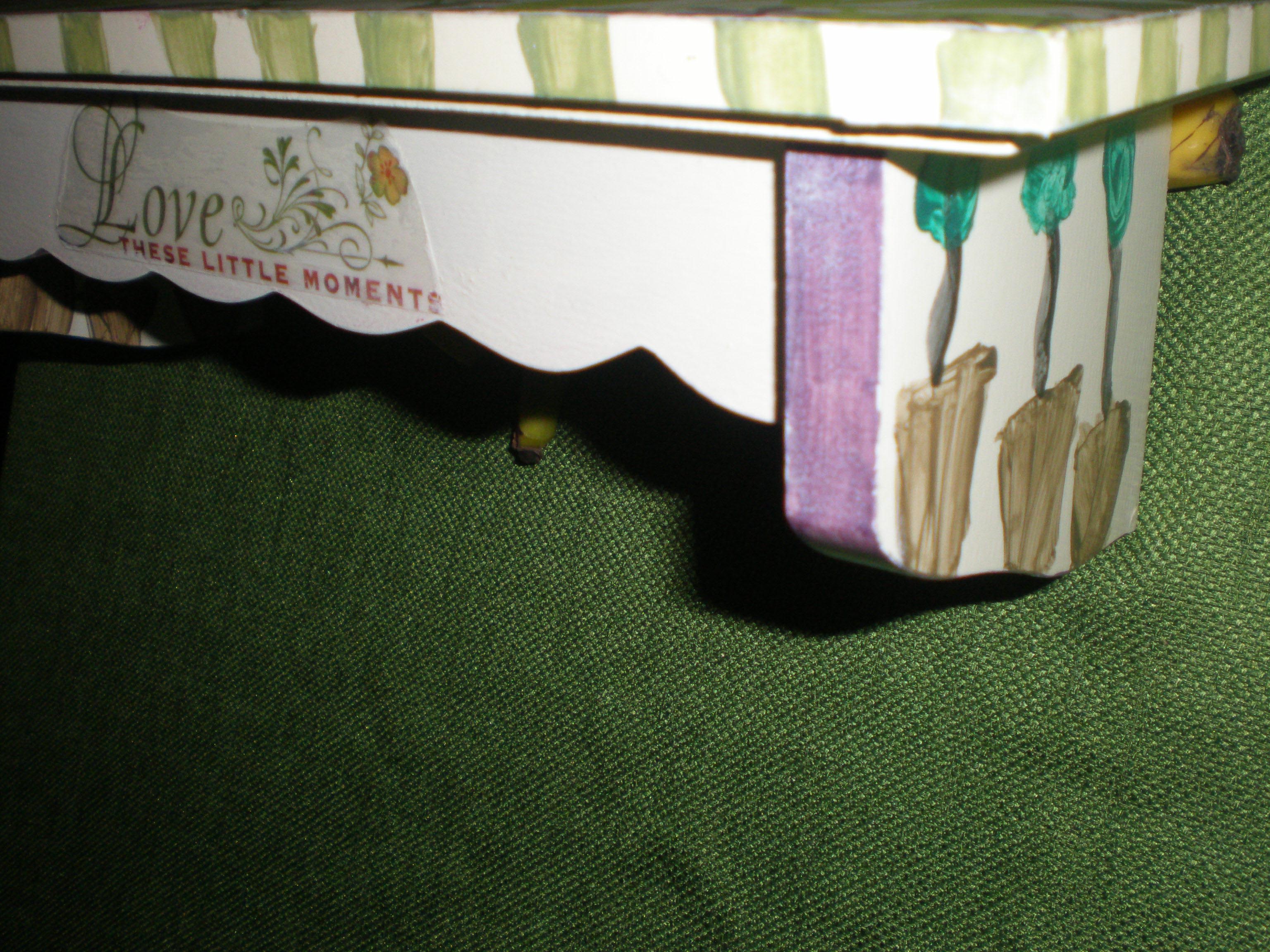 3.75"h X 12"w X 4.5"d This bookshelf reminds so much of Spring and the joy of seeing the first flowers bloom.